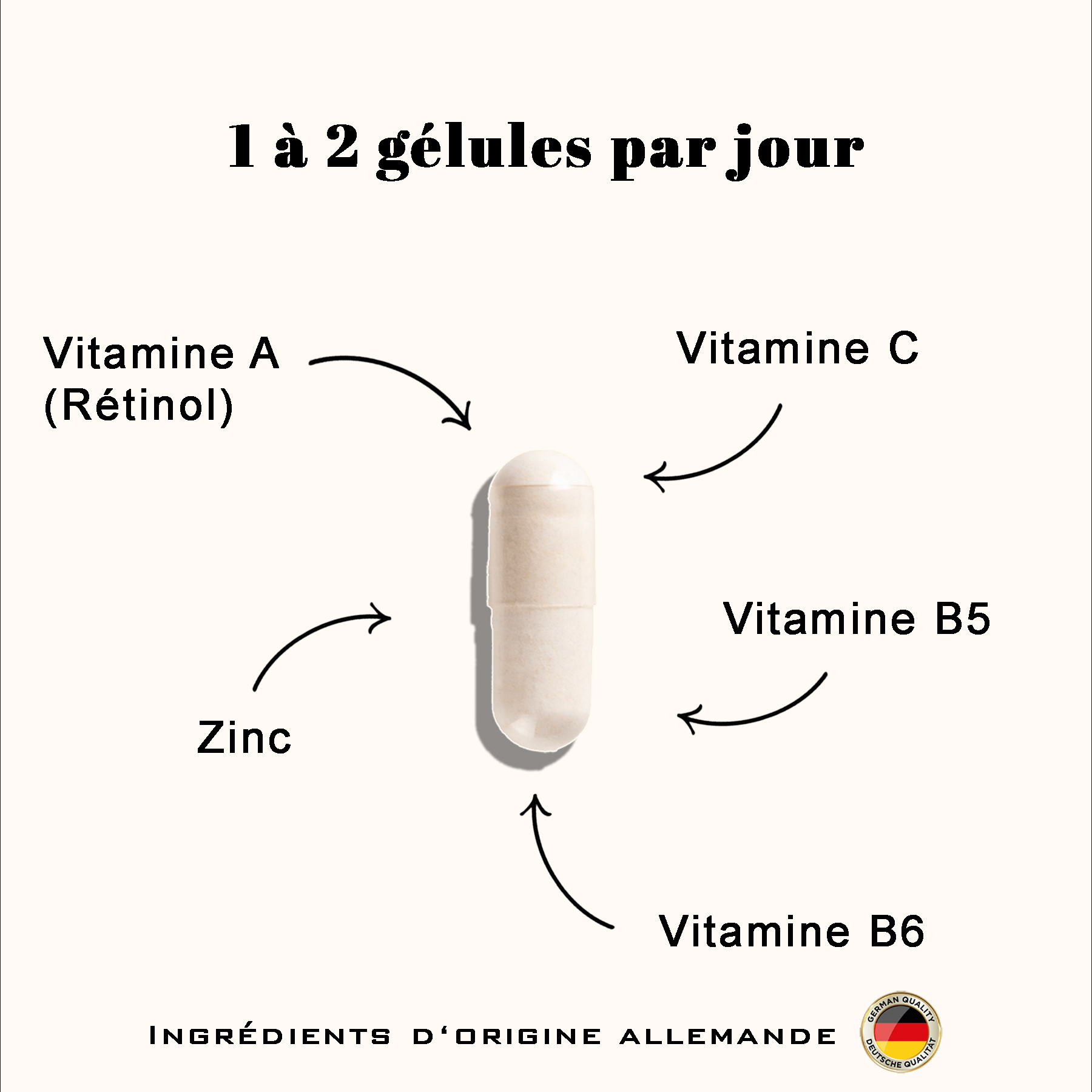 - Vitamine A : favorise la régénération de la peau et limite la kératinisation excessive des follicules.